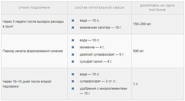 - 48 ساعة قبل الزراعة في أرض مفتوحة (15 جرام نترات الأمونيوم، 10 جرام ملح البوتاسيوم، 40 جرام سوبر فوسفات لكل 5 لترات من الماء).