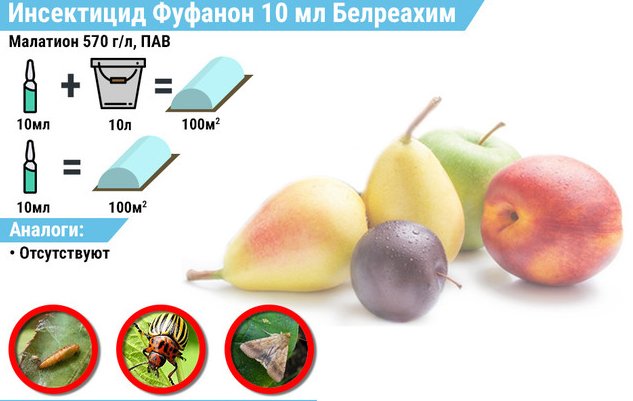 لمعالجة نباتات الفاكهة أو التوت، يُخفف ٥ مل من المبيد الحشري في ٥ لترات من الماء. للشجيرة الواحدة، ستحتاج ١.٥ لتر من المحلول، وللشجرة، لترين على الأقل.