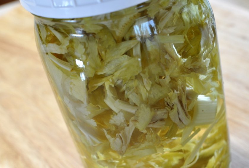 - جذر الكرفس المجفف فعال في علاج قضمة الصقيع. يُنقع 200 غرام من جذر الكرفس المفروم في لتر واحد من الماء، ويُطهى على نار هادئة لمدة 10-15 دقيقة. يُبرّد المغلي إلى درجة حرارة الغرفة، ثم يُوضع على المنطقة المصابة بقضمة الصقيع.