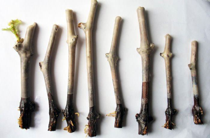 تُعتبر الزراعة من العُقل طريقةً أقل موثوقيةً لزراعة هذا الصنف من العنب. اختر أغصانًا تحتوي على برعمين أو ثلاثة، وأنبتها في الماء حتى تظهر الجذور. نقطة ضعف هذه الطريقة هي درجة الحرارة. يجب أن تصل درجة حرارة التربة إلى ١٠ درجات مئوية، والهواء إلى ١٥ درجة مئوية. وإلا، ستموت العُقل.